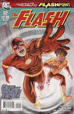 This is a first-rate issue, but when the series returns I'd like a change in tone; the melancholy vibe has made sense given Zoom's changes in Barry's world (murdering his mother, framing his father) but post-Flashpoint I want to see a different Flash book, with Barry's old sunny personality restored. Surely a Flash can outrun the darkness?